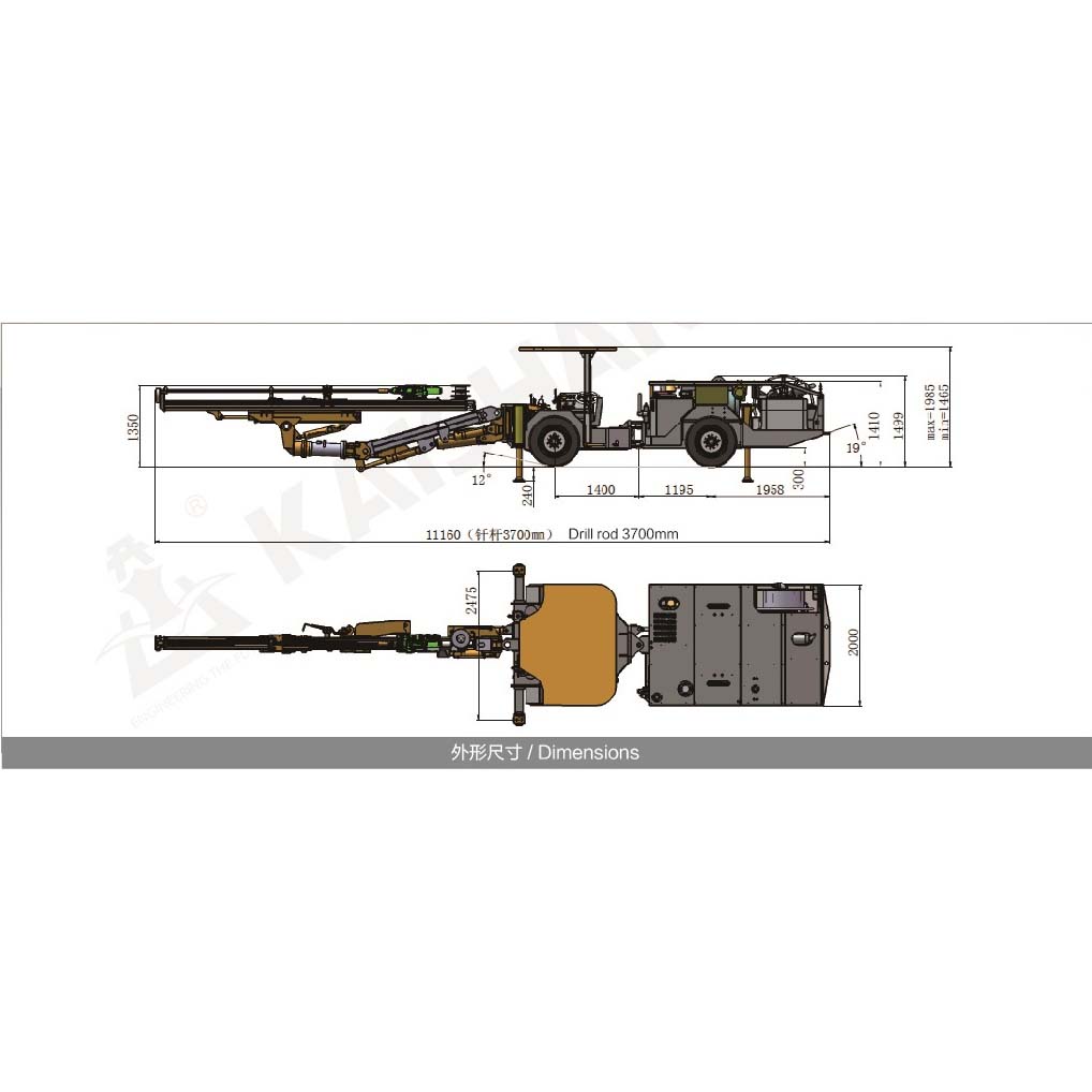 KJ212-type full-hydraulic tunnel jumbo can be used for drilling vertical, inclined and horizontal blast hole, which is specially designed for low roadway. Through section of 2.5m*1.5m, it is applicable for tunneling operation of roadway with section of 3.5m*1.8m-5m*4.8m.